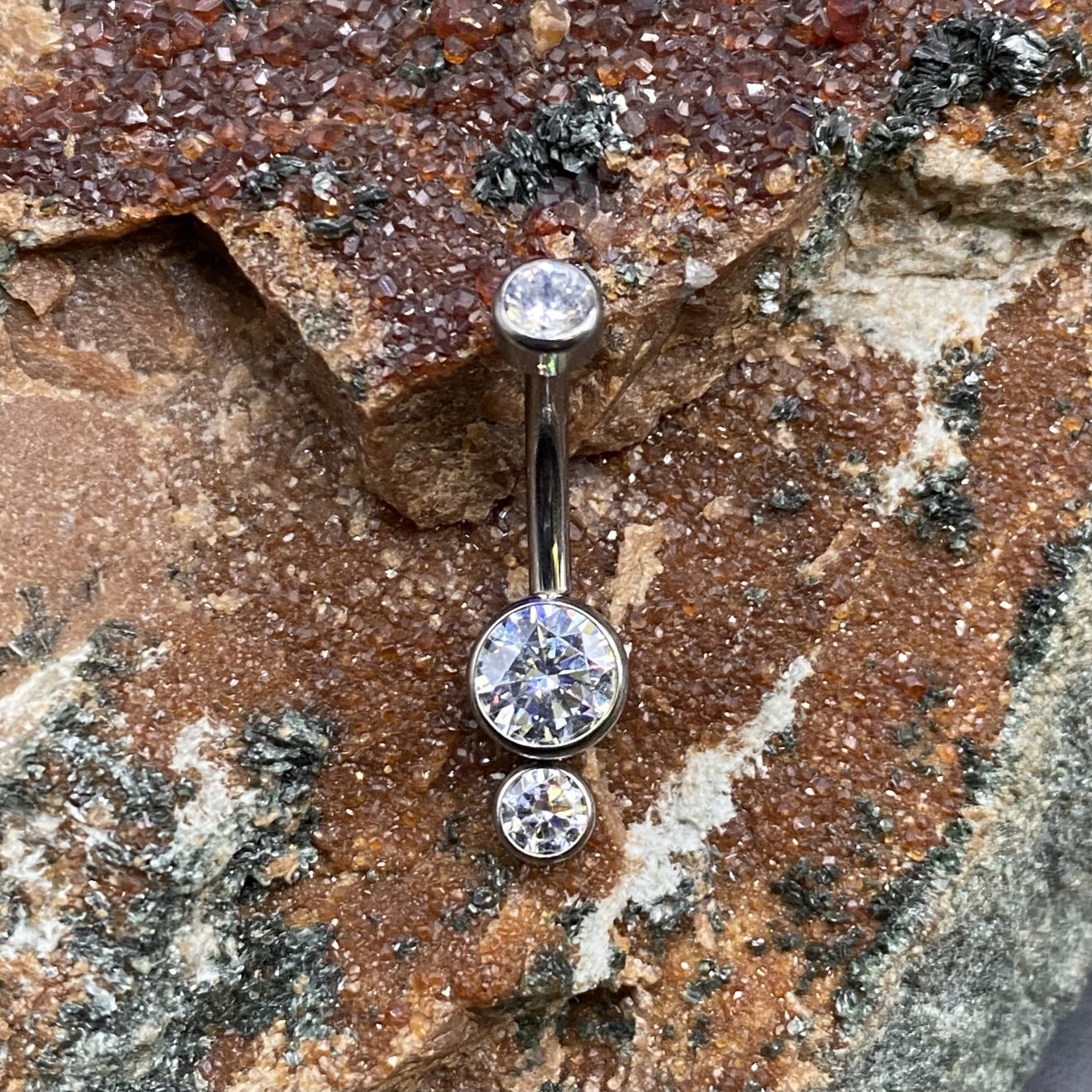 Internally Threaded Material: Implant Grade Titanium F-136 Length: 10 mm Gauge: 14G Ball size: 5mm and 8mm Gem: White Cubic Zirconia
